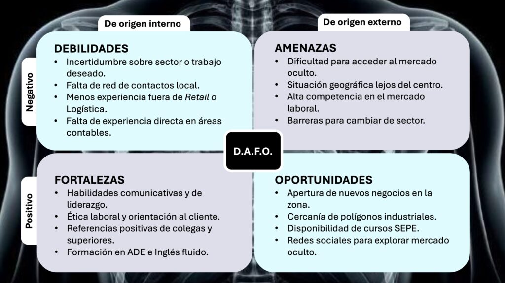 Veremos, como muestra, cómo el análisis DAFO puede ser una gran herramienta para el autoconocimiento.
